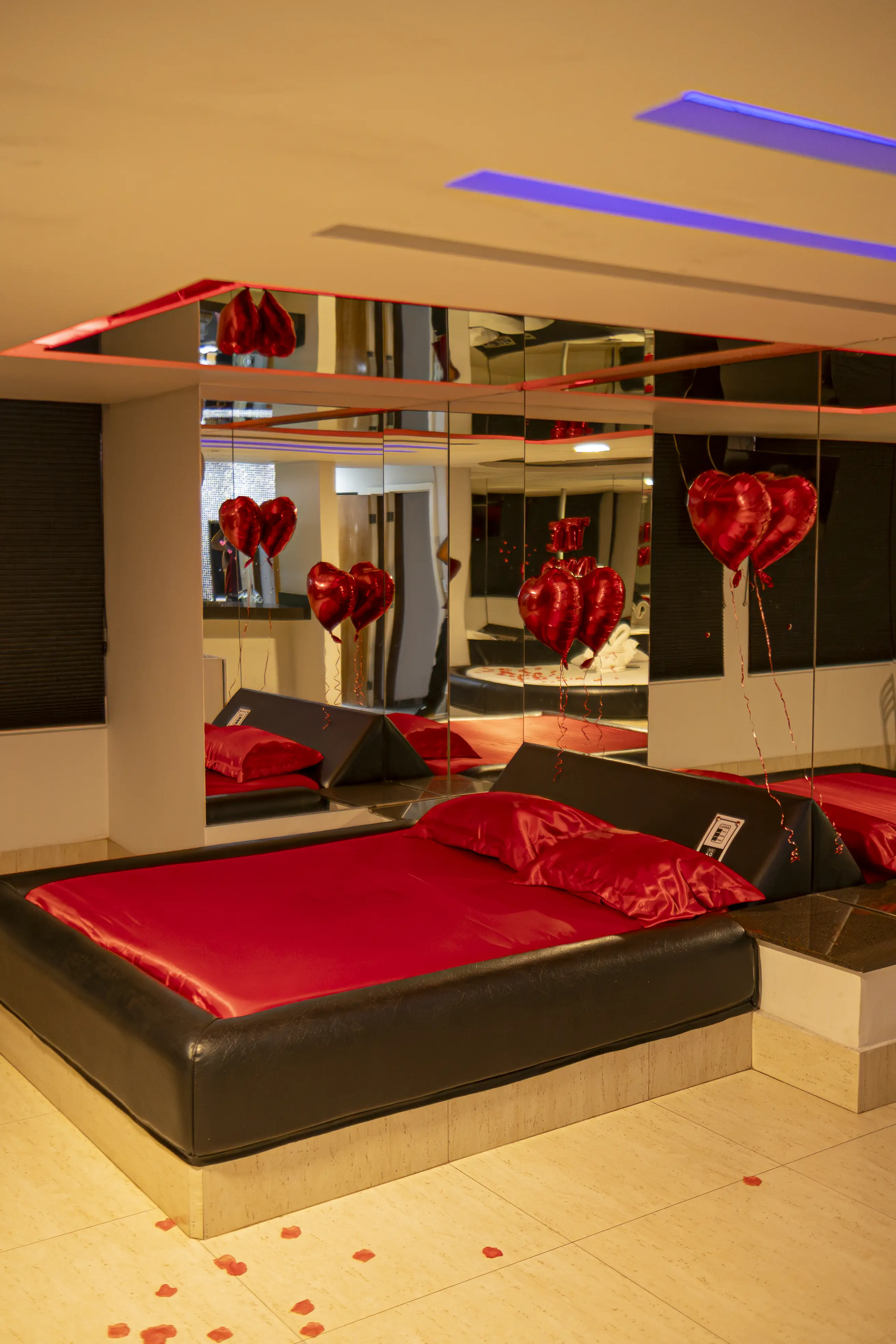 Um universo vermelho onde o tempo para, os sentidos despertam e o prazer é livre de limites. Aqui, as fantasias se realizam com conforto, privacidade e intensidade.